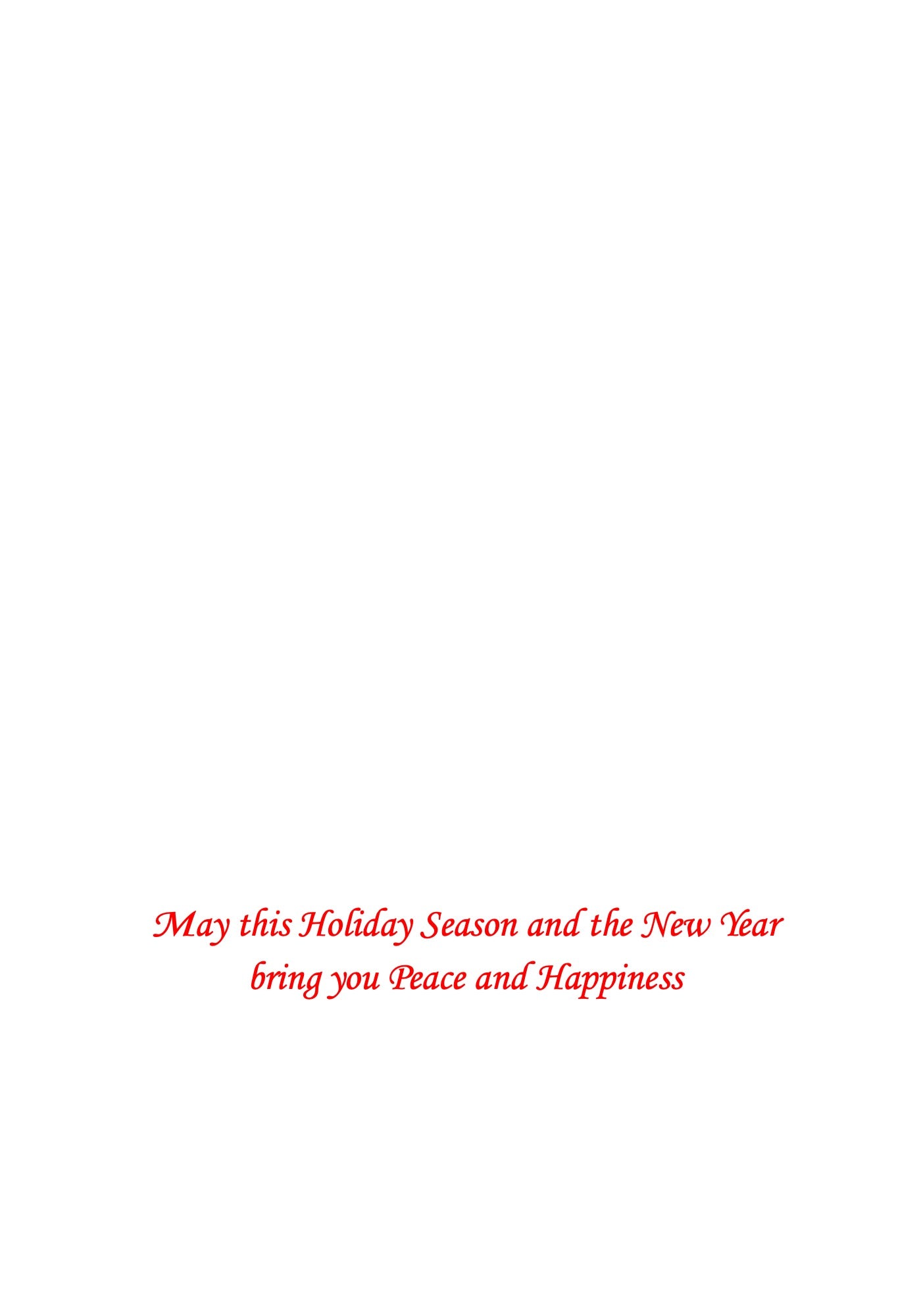 "May this Holiday Season and the New Year bring you Peace and Happiness"